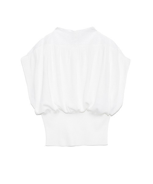 光沢感の有るハイゲージの糸と、透け感の有る糸を組み合わせたプルオーバー。 透ける糸を使用したハイネックの襟ぐりは後ろスナップで開閉する仕様になります。 切替えにはギャザーを前後寄せて膨らみを出し、ウエストでブラウジングさせるデザインに。 適度に絞ったウエストリブはボトムにインし易く、また、アウトにしてブラウジングさせても○。 ■ウォッシャブル ※照明の関係により、実際よりも色味が違って見える場合があります。 またパソコン・スマートフォンなどの環境により、若干製品と画像のカラーが異なる場合もございます。予めご了承ください。 商品の色味は、商品単品画像をご参照下さい。 ※商品画像はサンプルのため、色味やサイズ等の仕様に変更がある場合がございますので、予めご了承ください。
