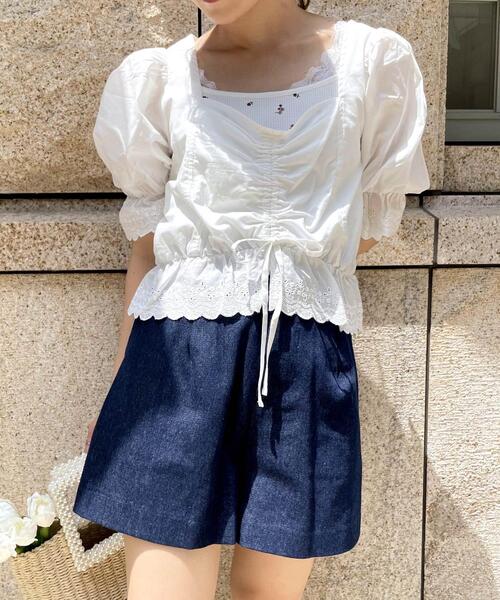2021 春夏アイテム キレイめにも着られるショートパンツはオンオフ問わずに大活躍。シンプルなデザインにサイドのクルミボタンがレトロ&キュートなアクセントになっています。裾へ向かって広がるシルエットでスタイルアップを狙えるのも◎。バックウエストはゴムになっているのでフィット感良く着られます。サイドには便利なオープンポケット付き。 ・裏地あり ・バックウエストゴム ・ポケットあり