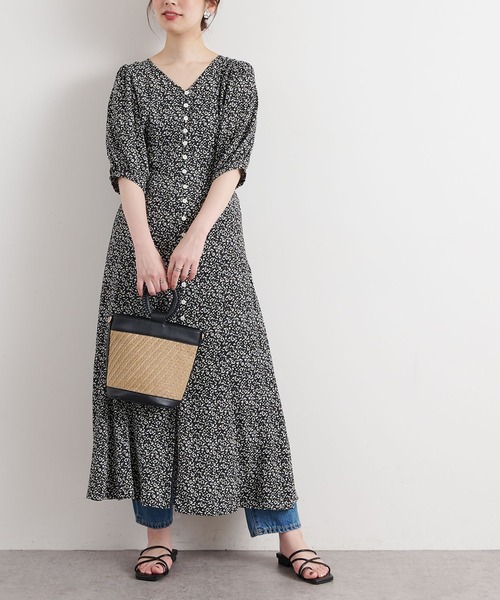 【2021SS natural couture】 レトロライクな花柄プリントを施したワンピース フレンチレトロな雰囲気のオリジナル小花柄シリーズ。 ギャザースリーブで大人可愛いデザインに仕上がりました。 【メリハリの効いた美しいシルエット】 後ろはゴム仕様、再度のリボンでウエストラインの調節もできるので、 幅広いお客様におすすめなアイテムです。 深すぎないVネックが顔周りをすっきりとした印象を与えてくれ 揺れるフレアシルエットで、フェミニンムードも一層引き立つ着こなしに◎ 【ふんわりとした軽い素材感が魅力】 これからの暑い夏でも着て頂ける、着心地の良いレーヨン素材を使用しました。 きれい見えしながらも快適な着心地を叶えてくれます。 一枚で着こなす季節から、カーディガンやアウターを羽織る季節まで、ロングシーズン活躍し、 デイリーにもちょっとしたお出掛けにも様々なシーンでおすすめワンピ―スです。 カラーは甘すぎない色柄展開で、ブラック、グリーン、レッドの3色ご用意しました。 【同素材で331400380:レトロ小花柄スリットスカートもご用意しております】 ================ 透け感:なし 裏地:あり 伸縮性:なし 光沢感:なし 生地感 :滑らかな生地感 ================ ▼お気に入り登録▼ ♡をクリック!でお得な情報がいっぱい! お得なセール情報や、人気完売商品の再入荷情報 ラスト1点の通知など、耳寄りなお買い得情報をいち早く受ける事ができます。 ▼お気に入り登録でお得な情報がいっぱい▼ ブランド【natural couture(ナチュラルクチュール)】のお気に入り登録で 新商品や再入荷など、お得な情報を受け取ることができます!