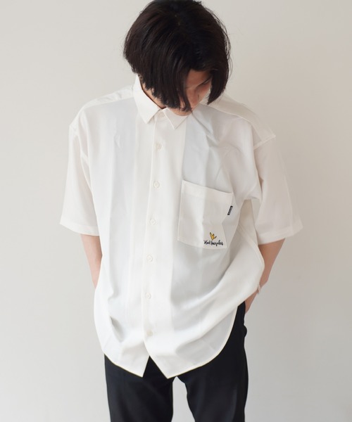 PHOTO Pt. WORK SHIRT Mark自身のフォトプリントがバックに大きく施された半袖ワークシャツ。 左胸ポケットには筆記体ロゴ&ゴンバト刺繍、ピスネームタグも配置。トレンドのゆったりとしたシルエット、ポリツイル特有の張りと艶のある素材感が◎。女性の方でも着用いただけるおすすめの一着となっております♪ 【Mark Gonzales / マークゴンザレス】 アメリカ・カリフォルニア州出身のプロ・スケートボーダーであり、詩人、画家、音楽PVの監督なども務める多彩なアーティストMark Gonzales(マーク・ゴンザレス)。 マーク・ゴンザレス独特のアートデザインはスケートボード関連アイテムだけでなくTシャツ、パーカー、シャツ、雑貨などにも展開しています。 【インフォメーション】 ◆商品のお気に入り登録 完売カラーの再入荷通知を受け取ることができます。 ぜひご登録ください♪ ◆ブランドのお気に入り登録 新商品や再入荷などのお得情報を受け取ることができます。 ぜひご登録お願いします