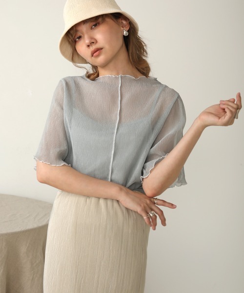 ●Bab●■POINT異色のパイピングとメロウフリルが魅力的なメロウ半袖トップス!清涼感のある透け感と、高級感のある上品なシアー素材もポイント。くしゅっとした質感が表情豊かで洗練された印象に仕上げてくれます。キャミソールが付いているので、一枚でも着れるのも◎■FABRICポリエステル100%の生地を使用しているのでしわになりにくく、インナーは肌触りが良く着心地も◎■COORDINATE付属のキャミを合わせてトップスとして着て頂いても、ベストとレイヤードしたり、ジャンパースカートのインナーとして合わせて頂いても様になる万能トップスです。デニムと合わせてカジュアルスタイルにしてもおすすめです。…………………透け感:あり裏地:なし(キャミソール付き)…………………※撮影環境により、多少実際のカラーと異なる場合がございます。また、携帯やスマートフォン、パソコンなどの画面上と実物では多少色が異なって見える場合がございます。ご了承下さいませ。※画像の商品はサンプルのため、実際の商品と若干仕様が異なる場合がございます。※濃色品は、過度な摩擦や濡れた状態での摩擦により、色落ち・色移りをする恐れがあります。※この商品は、素材の特性上、洗濯の際に多少の縮みが生じる恐れがあります。洗濯後は形を整えてから干してください。※その他お取り扱いに関しましては、商品に付属のアテンションタグをご覧ください。★商品のお気に入り登録再入荷やラスト1点のお知らせ、セール情報などお知らせを受け取ることができます!★ブランドのお気に入り登録新商品や再入荷などのお得な情報を受け取ることができますので、是非ご登録ください。