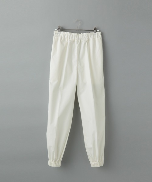 【デザイン】 コットン生地でとても涼感のある、トレンドのジョガーパンツです。 同素材でお作りしたビッグカラーブラウスとセットアップ着用が可能です。 カジュアル見えする素材のジョガーパンツはよくありますが、 コットンの微光沢感とハリのある生地でのジョガーデザインが新鮮で大人っぽいです。 夏らしくマリンテイストにボーダートップスと合わせも○、爽やかな着こなしが叶います。 おうち時間でもリラックスして穿いていただけるウエストゴム仕様、 また便利なポケット付きです。 【素材】 繊維が密に織り込まれているので頑丈な作りで、軽量で軽い着心地の素材です。 パリッとした張り感があり、涼し気で着心地の良い肌触りと乾きやすさは夏に向けてもおすすめです。 【洗濯可否】 手洗いでの処理が行えます。