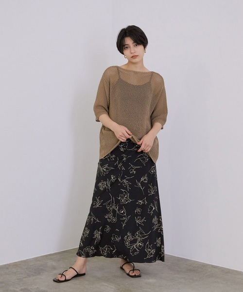 レイヤードスタイルに取り入れやすいトレンドアイテム!【素材】 綿とアクリルが半々の混率でナチュラル感がありながらも程よい落ち感のある素材感になっています。 【デザイン・シルエット】 肌離れのある程よいゆとり感のあるサイズで、ボックスシルエットになっています。 襟ぐりや裾をすっきりした始末にすることでカジュアルながらも女性らしさのある仕上げにしています。 【カラー】 使い易く、レイヤードでカラー合わせが楽しめるオフとベージュの2色展開 【おすすめのスタイリング】 インナーにタンクトップやキャミソール合わせで、取り入れやすいレイヤードスタイルがおすすめです。 インナーにロンTなどの長袖を合わせていただくと秋口まで長く着用いただけます。 ---------------------------------- 裏地:なし 透け感:あり 伸縮性:あり 光沢感:なし 生地感・厚さ:薄手 ポケット:なし ケア方法:手洗い、石油系溶剤によるドライクリーニング、ウェットクリーニング ---------------------------------- 【モデル着用サイズ】 全色モデル身長:163cm 着用サイズ:38 ※店頭・室外で撮影している画像は、光の当たり具合で色味が若干異なって見える場合がございます。 商品の色味は、スタジオ撮影の画像をご参照ください。 ※画像の商品はサンプルです。 実際の商品と仕様、加工、サイズが若干異なる場合がございます。 ※店舗での商品のお取り扱いについて ROPE'の商品は、ROPE'実店舗のみの取り扱いになります。 また、MADEMOISELLE ROPE' の商品は、MADEMOISELLE ROPE' 実店舗のみの取り扱いになります。 ※商品の入荷状況は、店舗までお問い合わせをお願いいたします。