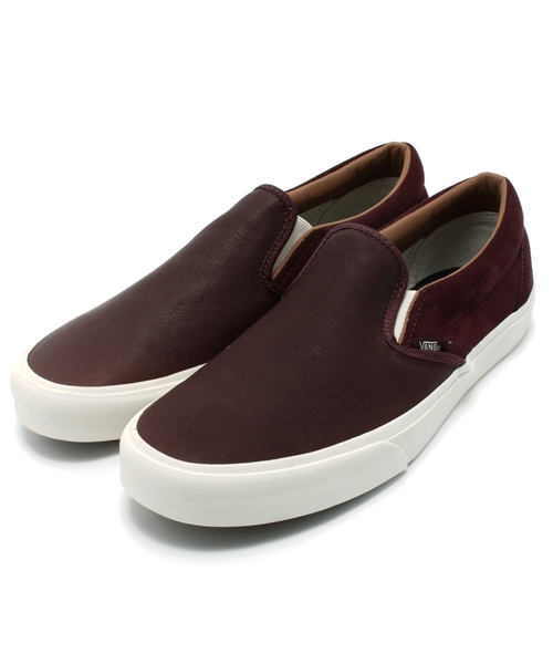 VANSハイエンドライン「カリフォルニア・コレクション(california cllection)」の“Classic Slip-On CA”をセレクト。上質なスムースレザーを使用し、高級感の漂う1足です。 VANS / ヴァンズ 1966年、南カリフォルニアのアナハイムにて「Paul Van Doren」、「Gordon C.Lee」、「Serge d'Elia」らによってカジュアルフットウェアとアパレルの製造業者として創業された「VANS」。様々なエクストリーム系スポーツをサポートする老舗メーカーです。70年代にスケートボードシューズを発表し大ヒット。グリップ性に優れたソールがスケーターのみならずBMXライダーなどから絶大な支持を得ます。デザイン性はサーファーやミュージシャンに愛用され世界中に名前を広げることになります。 店舗へお問い合わせの際は下記品番をお伝えください。品番:11-31-0394-483