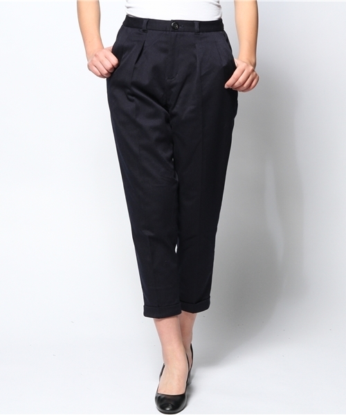 Discoat(ディスコート) ゆるシルエットもハリのある生地できちんと感を忘れない絶妙さがポイント☆クロップド丈なのでこれからの足元はショートブーツなんかもおすすめ。ONスタイルにも映えるよう、バックギャザーになっているのでインスタイルもスマートにきまります♪ model H168 B74 W60 H84 着用サイズ:フリー