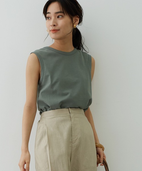 前後2WAYで首元の開き具合を楽しめるノースリーブプルオーバーです。 ■POINT ノースリーブでも広めの肩幅なので安心感のあるシルエット。 シャリ感とドライタッチで暑い夏にも着心地の良い肌触りの表情のある素材を使用。 体のラインを拾わない絶妙な肉感もポイントです。 シンプルながらも前後2WAYで着用可能なのでスタイルによって着こなしに変化がつけられます。 バックオープンな着方は抜け感があって女性らしい印象に。 合わせやすい3色展開です! ■COORDINATE パンツやスカートはもちろん、キャミワンピやサロペットとのレイヤードもオススメ! シンプルなデザインなので大振りなアクセサリーとの相性も◎ プリントボトムと合わせても素敵です。 ----------------------------- 裏地:なし 光沢感:なし 透け感:ホワイトはややあり 伸縮性:あり 生地の厚さ:やや薄手 -----------------------------
