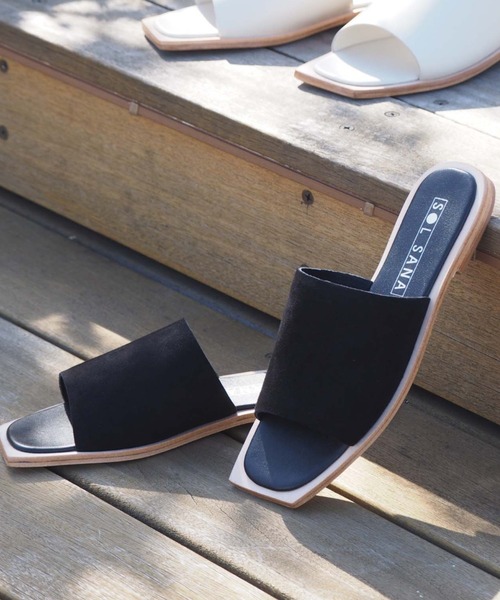 ★OUVRAGE CLASSE 2021SS COLLECTION★【 SOLSANA / ソルサナ】 Madonna Slide マドンナスライドサンダルの登場です履きやすさや耐久性にもこだわっていてハイクオリティ◎価格も魅力的!!キレイなフォルムで、ハイファッションにも相性の良いフラットサンダル。ヤギ革レザーを使用しているので、特別感のある履き心地と大人な足元を演出してくれます。コーディネートに活用しやすいデザインなのでヘビロテ間違い無しの必須アイテム!!!【 SOLSANA / ソルサナ】SOL SANA(ソルサナ)は、オーストラリアを拠点に活動するレディースシューズブランドです。2010年にファーストコレクションを発表。デザイナーのサラ・カバーレイが手掛けるシューズは、ハイファッションなスタイルにとてもマッチするスタイリッシュでクールなデザインです。SOL SANAのシューズは、クオリティ、履き心地の良さ、耐久性にもこだわりを持ちながらミッドプライスで提供できるレザーシューズを完成させます。ハイブランドからのインスピレーションに溢れたクリエイティブで革新的なシューズコレクションを発表し続けています。【スタッフ着用コメント】----------------------------年齢:50代前半、身長:159cm、体型:普通普段サイズ:M(23.5cm)着用サイズ:S(37サイズ)サイズ感:横幅が少しフィット感あり、履きやすい。素材感:ヤギ革を使用して柔らかな素材で耐久性にもこだわっている。着心地:スタイリッシュでクールなデザインで、どんな服装にも合わせやすい。--------------------------------------------------------年齢:20代後半、身長:170cm、体型:普通普段サイズ:M(24〜24.5cm)着用サイズ:M(38サイズ)サイズ感:甲部分がフィット感のあるサイズで踵が収まり、ちょうど良い。素材感:ヤギ革を使用していて柔らかな肌触り。着心地:シンプルなデザインで流行り廃りがなく、綺麗めにもカジュアルにも使える1足。--------------------------------------------------------年齢:20代前半、身長:158cm、体型:普通普段サイズ:M(23.5cm)着用サイズ:M(38サイズ)サイズ感:甲の幅もゆとりがあるので、甲高でも楽に履ける。素材感:山羊革を使い、柔らかい素材感。履いていると、より柔らかく馴染むので、足へもストレスフリー。着心地:シンプルでベーシックなデザインなので、綺麗めにもカジュアルにも使える万能アイテム。締め付けがない為、長時間履いても疲れにくい。----------------------------●気になる商品には是非「お気に入り」登録をお願いします●気になる商品のお好きなカラーやサイズ感に、ハートマークをクリックして頂き、お気に入りに登録して頂くと…入荷情報や残り1点の通知、完売カラーの再入荷、セール情報などを受け取ることができます。