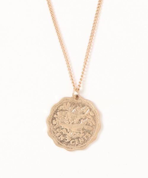 ヴィンテージライクな雰囲気のコインネックレス。細いチェーンのトップで揺れる、波打つコインモチーフがアクセントになります。 デザインはシンプルなので、デイリーカジュアルのポイント使いに便利です。 後ろの留め具で少し長さ調節ができます。