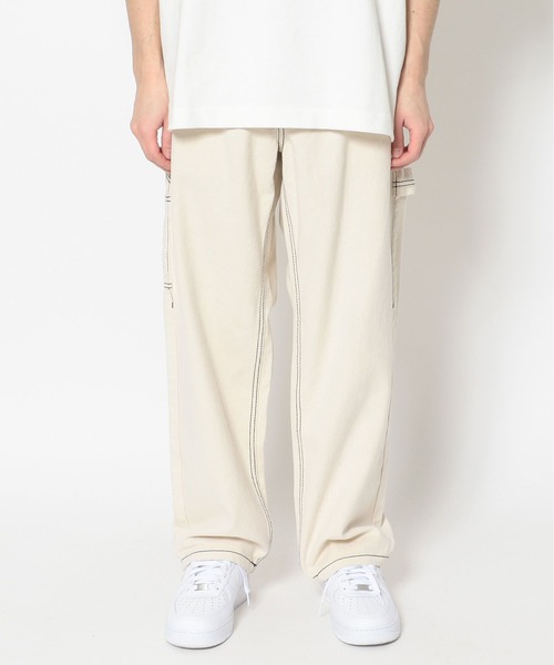 DankeSchon 90年代にスケーターやHIP-HOPアーティストたちを筆頭に大流行したペインターパンツの縫い目を太めのステッチで仕上げた一本。 ルーズなスタイルを手軽に作り上げてくれる、ストリートルックに欠かせないアイテムです。 程よくゆったりとしたストレートシルエットでパーカーやカットソーはもちろん、シャツやスプリングニットなどとの着合わせにも相性抜群◎ やや長めの丈感ですのでスタイリングに合わせてロールアップなどのアレンジもオススメ。 DankeSchon・・・DankeSchonとは、このブランドの核となるキーワードD digitaliyデジタル式 A Architect創造者 N neologism新表現 K kittenish悪ふざけ E engrossing心を奪う の頭文字を組み合わせたものにドイツ語のSchonを付け、ブランドの意図に賛同してくれる人達に感謝の意味を込め、「DankeSchon(ありがとうの意味)」としている。 ファッションのテーマは「ニュースタンダード」。 時代に抗うのではなく、すり抜け受け流すことでブランドに見合う要素を抽出し、高品質な素材と、デジタライズなグラフィックを掛け合わせコレクションに落としていく。 純粋なシルエット、ディテールへの徹底したこだわりと同時に、ユニークで新しい見解も積極的に取り入れる。 そこから生み出された製品は、実用的でごく自然に日常に馴染むもの。