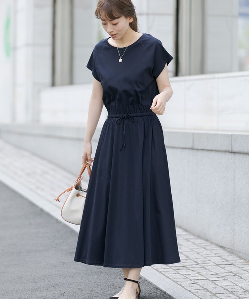 このアイテムはWEB限定商品です。POINT・1枚で大人カジュアルなスタイリングが完成するカットワンピース。通気性の良いコットン100%を使用。程よくハリとしなやかさがあり透けないので一枚で楽に着用できます。・お出掛け着としてはもちろんお家でのリラックスタイムにも最適。ラグランスリーブにふわっと広がるフレアシルエットで見た目の美しさにも拘った1枚。ウエストはブラウジング仕様で長さ調整可能です。・ご自宅でお洗濯可能です。※商品画像は、光の当たり具合やパソコンなどの閲覧環境により、実際の色味と異なって見える場合がございます。予めご了承ください。※商品の色味の目安は、商品単体の画像をご参照ください。-----------------------------透け感:なし伸縮性:あり裏地:なし光沢:なしポケット:あり-----------------------------