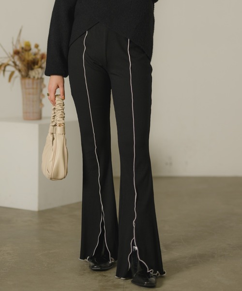 美脚効果抜群の裾スリット入りセミフレアリブパンツ[デザイン]膝下からふわっと広がるセミフレアデザインがポイントのリブパンツ。伸縮性のある素材にウエストゴムのストレスフリーな一枚です。くるぶし下までの着丈長めのデザインは、スタイルアップが狙える優秀アイテム。裾にスリット入りで抜け感を演出。裾は配色のメロウ加工になっており、見た目もかわいいこだわりデザインのパンツです。[素材]綿、ポリエステル、ポリウレタンの混紡素材を使用。肌触りも良く伸縮性のある生地し着心地にもこだわりました。[スタイリングポイント]同素材のトップス【品番:VRGFA0221009】と合わせたセットアップコーデやブラウスやワンピースと合わせたスタイリングもオススメです。----------------------------------------------------------▶商品のお気に入り登録完売カラーの再入荷通知やラスト1点の通知などお得なプライスダウンの情報も受け取ることができます。ぜひご登録ください◎▶ブランドのお気に入り登録新商品や再入荷など、ブランドの最新情報をいち早くお知らせします!ぜひご登録ください♪----------------------------------------------------------※撮影環境の光や角度により、実物と色味が異なる場合がございます。 また表示のサイズ感も実物とは若干異なる場合もございますので、予めご了承ください。 ※着用、お取り扱いの際は、商品に付いている品質表示を必ずご確認ください。