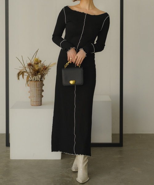 美しいシルエットを追求したリブワンピース [デザイン] 袖口・首元・センターに配色のメロウ加工を施し、リラックス感のあるリブのロングワンピース。 上半身はタイトシルエットにデザインしスカート部分は広がり過ぎないAラインとシルエットにこだわったワンピースです。 伸縮性のあるリブを使用する事でリラックス感のあるワンピースに仕上げました。 首回りは鎖骨が綺麗に見えるようにスッキリとサイドにスリットを入れる事で抜け感のある印象に。 [スタイリングポイント] 一枚で着るのはもちろん、下にパンツを合わせたコーデもオススメです! ショート丈の羽織や、トレンチコートと合わせても◎ Gジャンにスニーカーでカジュアルなコーディネートもオススメです! ---------------------------------------------------------- ▶商品のお気に入り登録 完売カラーの再入荷通知やラスト1点の通知など お得なプライスダウンの情報も受け取ることができます。 ぜひご登録ください◎ ▶ブランドのお気に入り登録 新商品や再入荷など、ブランドの最新情報を いち早くお知らせします! ぜひご登録ください♪ ---------------------------------------------------------- ※撮影環境の光や角度により、実物と色味が異なる場合がございます。 また表示のサイズ感も実物とは若干異なる場合もございますので、予めご了承ください。 ※着用、お取り扱いの際は、商品に付いている品質表示を必ずご確認ください。