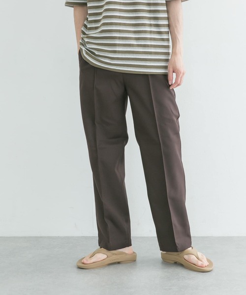 ■URBAN RESEARCH 2021SSワークウェアスラックスのような光沢のあるポリエステル素材のスラックス。ピンタック入りの綺麗なストレートシルエットで、ウエストはイージー仕様。裏地には吸水性のあるコットン素材でサマーシーズンでも快適に着用可能です。カットソーとのスタイルもワンランク上の仕上がりに。【体型別スタッフ着用レビュー】≪身長:165cm 体型:やせ型 着用サイズ:M≫センタープリーツが縫われており、アイロンかけの不要なパンツ。Mサイズで丁度良く着用できますが、丈が少し長く、フレア風に見えます。ストレートの見え方が良い方は、丈詰めするのがオススメです。≪身長:174cm 体型:普通 着用サイズ:L≫Mサイズでも履けましたが、ウエストのゴムのテンションが強いのでLサイズの方が楽に履けました。Lサイズでもややスリムでスラックスのように綺麗に履ける点も非常に良いです。素材もウールなどと違って軽い感じで洗濯しやすい所も助かる。※商品画像は、光の当たり具合やパソコンなどの閲覧環境により、実際の色味と異なって見える場合がございます。予めご了承ください。※商品の色味の目安は、商品単体の画像をご参照ください。-----------------------------透け感:なし伸縮性:ややあり裏地:なし光沢:ややありポケット:あり-----------------------------