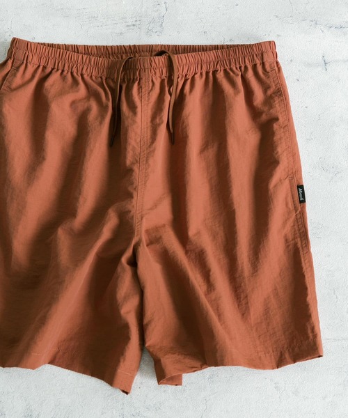 このアイテムはWEB限定商品です。 これからの季節に様々なシーンで活躍するナイロン素材のイージーショーツ。 撥水性のあるナイロン素材は耐久性も強く、アクティブなシーンでも安心して穿いていただけます。 水場での着用はもちろんのこと、街着としてデイリーユースで活躍できるシンプルなデザイン、またおしゃれに穿きこなせるニュアンスカラーを乗せました。 ウエストは総ゴム+ドローコードをあしらっており、家着としての着用もおすすめ。シワが目立ちにくい素材で、ワンマイルウェアとして汎用性の高い一着に仕上がっています。 ※この商品は素材の特性上、長時間日光に当たったり、汗・水・摩擦等により色落ち・色移りをする恐れがありますので、ご着用・洗濯などの際は、充分にご注意ください。 ※この商品は、素材の特性上、洗濯の際多少縮むことがあります。 ※その他お取り扱いに関しましては、商品に付属のアテンションタグをご覧ください。 ※商品画像は、光の当たり具合やパソコンなどの閲覧環境により、実際の色味と異なって見える場合がございます。予めご了承ください。 ※商品の色味の目安は、商品単体の画像をご参照ください。素材感 透け感:なし 伸縮性:なし 裏地:なし 光沢:ややあり ポケット:あり XLLM