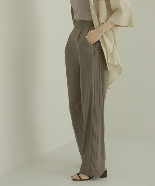 【サイドにさり気なく施されたプリーツがアクセントに】 程よいワイド感がありながら、フロントのタックデザインでスッキリ見えが叶うデザインです。ウエストはゴムが入っているためストレスなく動きやすいです。着回しやすい定番カラーと、夏らしい鮮やかなカラー展開をご用意しております◎ -LAATO- ”わたしはわたし"をコンセプトとし、 トレンドを意識するのではなく、自分の中で着たい服を確立している人をイメージ。 大人の女性のなめらかさや艶やかさを表現するデザインや、柔らかいカラーが特徴的なブランド。 シーズン:2021 S/S model : 162cm 着用サイズ : FREE ----------------------------- 《スタッフ着用コメント》 [スタッフA] 年齢 : 30代前半, 身長 : 149cm, 体型 : 普通 普段の着用サイズ : S 【着用サイズ】Free 【サイズ感】ウエストゴムなので、一回折れば履くことができますが、ヒールは必須になると思います。 【素材感】ツルッとした素材感で履きやすいです!裏地はないですが、透け感は気になりません。 【着心地】ウエストがゴムなので、履いていてすごく楽です。 [スタッフB] 年齢 : 20代後半, 身長 : 157cm, 体型 : 普通 普段の着用サイズ : S~M 【着用サイズ】Free 【サイズ感】私の身長で丈感は結構長いので、ヒールで履くことをおすすめします! 【素材感】素材感はさらっとしていて、涼しく感じます。 【着心地】ウエストはゴムなので楽に着られます。 ----------------------------- ※商品画像は、光の当たり具合やパソコンなどの閲覧環境により、実際の色味と異なって見える場合がございます。予めご了承ください。 ※商品の色味の目安は、商品単体の画像をご参照ください。 ▼お気に入り登録のおすすめ▼ お気に入り登録商品は、マイページにて現在の価格情報や在庫状況の確認が可能です。 お買い物リストの管理に是非ご利用下さい。 ----------------------------- 透け感:なし 伸縮性:なし 裏地:なし 光沢:ややあり ポケット:あり -----------------------------