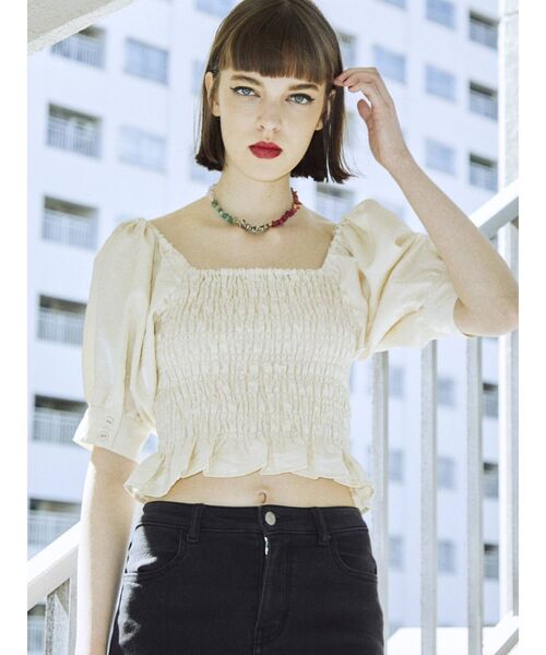 サテン生地を使用したシャーリングのブラウス。 ボリュームのあるタックスリーブ、スクエアネックで首元をすっきり見せてくれます。 ジャスト丈なので様々なボトムとの相性が良く、バランスの良いスタイリングに仕上げてくれます。 【スタイリング】 甘めのアイテムなのでレオパードやデニムと合わせることで、jouetieらしい甘辛スタイリングが完成◎ ▼完売カラーはこちら!()内の品番を検索頂くか、関連アイテムをCHECK♪ タックスリーブスクエアブラウス(082140401501) ----------------------------------------------------------------------------------------------------------- --------------------------------------------------------------------------------------------------------・この製品はゴムを使用しシャーリング加工をしている為、横に伸ばしたり、ご着用により多少の寸法の変化がございます。・シャーリングは永久的なものではなく、着用やお洗濯を繰り返すことにより経年劣化し、ゴムの伸縮が弱くなる可能性がございます。------------------------------------------------------------------------------------------------------------ 【jouetie ZOZOTOWN お買い物ガイド】▼商品をお気に入り登録! 完売商品の再入荷やラスト1点の通知、セール開始時にお知らせ! ▼"jouetie(ジュエティ)"をお気に入りブランドに登録! 新商品や再入荷など、ブランド最新情報をいち早くお知らせ! 是非、ご活用いただきお買い物をお楽しみください◎ 【jouetie official Instagram】 jouetie_official ブランド最新情報をいち早くチェック! 新作情報や着回し、お得な情報などをご紹介♪