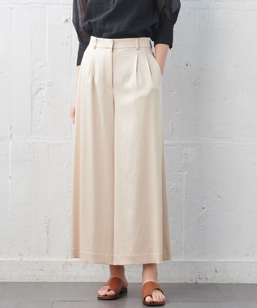 【JOSEPH STUDIO】 TEVY / ワッシャーサテン 肌触りと上品な光沢でうっとり 高級感のあるサテンシリーズ ■デザインサテン素材の上品なクロップドワイドパンツ。さらっとした質感と、微ストレッチの効いた素材感が着心地の良さをつくりだし、ストレスフリーな一枚。太めのウエストベルトがエッジの効いた印象に。 ■素材 落ち感と適度な張り感を兼ね備えているシルクライクな素材。海外のウエディングドレス用に使用していた生機を改良し、フルボディヴィンテージ加工を施し度詰めすることでコンパクトにしシボ感を出し表情を出している。 ■コーディネートシンプルなカットソーと合わせても上品にまとめてくれるパンツ。クロップド丈のワイドパンツはきれいめスニーカーやフラットサンダルとも相性良し。 ※画像はサンプルを使用しているため、実際にお届けする商品と仕様やサイズが異なる場合がございます。 ※画像の商品はサンプルです。実際の商品と色味、仕様、加工、サイズ、素材等が若干異なる場合がございます。 ※照明の関係により、実際よりもやや明るく見える場合がございます。またパソコンなどの環境により、若干製品と画像のカラーが異なる場合もございます。予めご了承くださいませ。