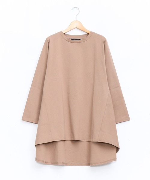 綿天竺のキチっと感が表現された 誰でも着やすいチュニックです。腰のラインや背中のラインをキレイに見せるために程よいフレアが安心感ももたらします。 少し着丈の差寸がつくことによって、サイドのシルエットが決まります。
