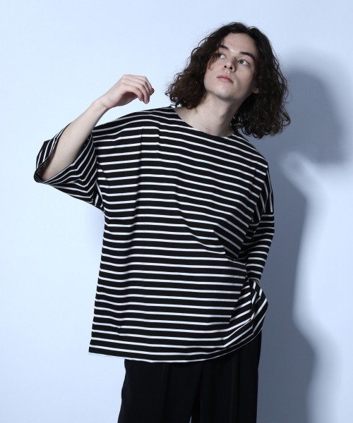 トレンドのボーダー柄のBIGカットソー。 上質なウルティマコットンを使用した着心地抜群なアイテム。 トレンドを意識した、大胆に肩の落ちるオーバーシルエットが◎ 夏に一枚着として着るだけで、映える一着です。