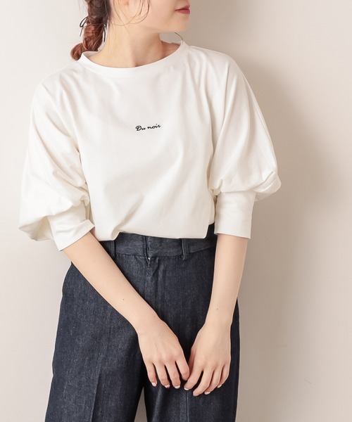 ピュアルセシン 2021 Spring collection 【with a Breeze】 新しい価値観の生活の中でこそ、ピュアルらしさのモノづくりの持続とその中にも、エフォートレスな気分、「with a Breeze」風をまとい、丁寧な暮らしに寄り添える、洗練されたスタイリングの提案 ◇Du noir 人気のロゴ刺繍シリーズにボリューム袖が登場◇ 昨年の夏、冬と発売したDu noirロゴ刺繍シリーズが今年らしいボリューム袖になって再登場。 胸元に施されたロゴ刺繍がワンポイントになっており、デイリー使いしていただける1枚です。 チュニック丈+ボリューム袖で隠したい部分をしっかりカバーしてくれるシルエット◎ ゆったり身幅で締め付け感もなく、落ち感のあるシルエットでパンツ合わせがキレイに纏まります。 袖は5分丈なので、今の季節から秋口までのロングシーズンでお楽しみいただけます。 ・ワンポイントのブランドロゴがキュート ・シンプルなデザインでボトムを選びません ・コットン100% ・柔らかく、滑らかな着心地 =============================== 透け感:なし 裏地:なし 伸縮性:あり 光沢感:なし 生地の厚さ:普通 【スタッフコメント】 年齢:20代前半/身長:157cm/普段着用サイズ:Mサイズ サイズ感:ゆったりした身幅です。チュニック丈ですが、生地がそこまで厚くないのでボトムにインしても 違和感なく着用出来ました。 素材感:コットン100%の滑らかな素材感で、伸縮性もあり楽な着心地です。 =============================== ※撮影場所やお使いのモニター環境により若干お色味が異なる場合がございます。特にロケの撮影では明るく見える傾向にございます。 ※予約商品はサンプルで撮影をしております。若干の仕様が変更になる場合がございますので予めご了承の上ご注文くださいますようお願いいたします 。