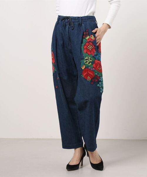 BOHEMIANS/ボヘミアンズ DENIM GARDEN PATCH BIRD RELAX TUCK PANTS GARDEN柄パッチワークを施したライトオンスのリラックスジーンズ。 タック入りのゆったりシルエット。 ウエストはドローコード入りで楽々調節が可能です。 【BOHEMIANS/ボヘミアンズ 絶えず移動し、ひとつの場所にとまらない民】 彼らはどんな場所でも順応する力強さを備え、自分達の個性を失わない。 そんな想いが籠められた「ボヘミアンズ」の商品はどこか自由で、やさしいのです。 旅だったり、本だったり、映像だったり、日本人が生活の中で感じた世界中のいろいろな文化、 インスピレーションを自分たちで解釈し、生地にしたり、デザインだったり、テーマにしたりします。 自由な気持ちで、服を着ることを純粋に楽しみたい...彼らの洋服はやさしい笑顔になります!