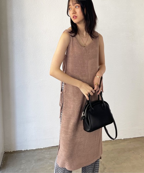 【Shelly island /シェリーアイランド】表面変化のあるテープヤーン素材を使用し、レイヤードするだけでトレンドライクなスタイリングが完成するサイドリボンジレ/ベスト《detail》・一枚で上級者に見えるテープヤーンベストは、この春夏の気分にぴったり!・軽く、涼し気なテープヤーン素材でレイヤードコーデも重くならず 様々なスタイリングをお楽しみいただけます◎・両サイドのリボンでフィット感の調節も可能。・Iラインシルエットが縦長効果になり、スタイルアップ!・2色ともに程よい抜け感のあるやわらかなカラーで、今年らしいこなれた印象に《fabric》・透け感:有り・裏地:無し・伸縮性:有り・生地の厚さ:普通※落ち感があるニット素材のため、サイズの変動が生じる場合がございます。※モカ:下げ札にはBEGと記載されております。 商品の色味はサイト表記のブラウン系モカです。◆商品のお気に入り登録完売カラーの再入荷通知、残り1点の通知、セール等値下げした時の通知も受け取ることができます。◆ブランドのお気に入り登録新商品や再入荷など、いち早くブランドのお得な情報を受け取ることができます。是非ご活用ください。※ニット製品のお洗濯・お取り扱いにつきまして。ニット製品のお洗濯はネットに入れ手洗い後必ず「平干し」にてお取り扱い下さい。ニット製品の性質上、ハンガーに吊っての吊り干しをしますと伸びる原因となります。また保管の際もハンガーに吊っての保管は伸びる原因になります為、お避け下さい。お洗濯、お取り扱いの際は上記点に十分にご注意ください。※この商品は、摩擦や、汗・雨などによる水ぬれにより色落ちが生じる場合がございます。衣服や周囲のものに色移りする恐れがありますので、白色や淡色のものと組み合わせる際は、十分にご注意ください。※撮影環境により多少実際のカラーと異なる場合がございます。※生産時期により若干の色ブレやサイズの変動が生じる場合がございます。※表示のサイズ感と実物は異なる場合もございます。上記ご了承の上、お買い求め下さいませ。