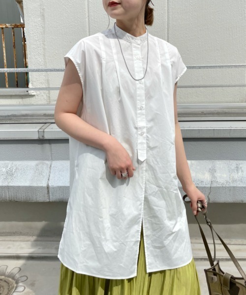 さり気ないこなれポイントが詰まった魅力たっぷりブラウス ・リラックス感のあるルーズな着丈 ・細部にさり気ないこなれポイント ・立体感のあるシルエットできちんと感も 【生地・デザイン】 タックデザインが印象的なブラウス。タックデザインで立体感のあるシルエットはきちんと感がでます。長めの着丈やゆったりとしたサイズ感は、リラックス感も感じられ、幅広いシーンで活躍すること間違いなし。バックにもタックが入っているので、ふわっとした後ろ姿も可愛い1着。シンプルながらも、途中までのボタンディティールや立体感のあるタックデザインなど、細部にこなれポイントが。カジュアルから大人まで、様々なテイストで表情を変えてくれるブラウスです。 【コーディネート】 着丈が長めなので、すっきりシルエットのボトムがおすすめ。爽やかなカラー展開なので、これからの季節らしいぱっきとカラーが◎デニムなどのカジュアルアイテムにもマッチします。