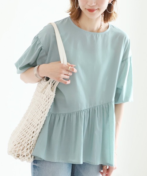 春に大好評いただいたブラウスが 夏でも楽しめる半袖タイプで再復活! 爽やかなミントカラーを追加しました◎ recaオリジナル!大人カジュアルなブラウス ■Pointボリュームのあるふんわり袖はそのままに 夏でも着ていただける半袖に変更しました! 肘がギリギリ隠れる絶妙な五分丈がポイントです。 二の腕、腰周り、お尻、気になる箇所をさり気なく 隠してくれるので安心。 春ver.から首元がボタン仕様に変更! 着脱が楽になりました◎ ------------------------------- ▽長袖ver.はこちら ペプラムブラウス →y4060 で検索! ------------------------------- ■Deteil コットン100%の薄手素材だから暑い日も快適な着心地。 袖口のゴムでふんわり袖をキープしてくれます。 ■Coordinate 甘くなりすぎない程よい可愛さで、 年齢問わず合わせやすい♪ 前後差のあるスタイルで腰周りもしっかりと カバーしてくれるので毎日着たくなるアイテムです。 細身のボトムスと合わせてバランスよく着ていただくとすっきりまとまって見えます。 斜めに入ったウエストラインで低身長の方でも バランスよく着ていただけます◎ ■綿素材の商品のお手入れ方法について 綿素材のお洋服はお洗濯方法により縮みやねじれて見える状態になることがございます。はじめてお洗濯をしていただく時に強く縮みが出る事がございます。 そのため、お洗濯の際は「手洗い」または「ドライコース」で行うことをおすすめしております。 また、脱水時間は30秒程度と短くするようにお願い致します。 乾燥機は縮む原因になりますのでご使用はお避け下さい。 干す際は『軽くしわを伸ばして』形を整えてから干していただくことをおすすめしております。 ■■■もっとお買物をお得にお楽しみいただくために■■■ 【商品のお気に入り登録】再入荷のお知らせや、ラスト1点のお知らせ、セールのお知らせを受け取ることができます! 【ブランドのお気に入り登録】新作商品や完売アイテムの再入荷情報など、お得な情報をいち早く受け取ることができます! ※サイズは現物をスタッフが平置き採寸したものになります。 ※モデル着用写真は撮影環境により、多少実際のカラーと異なる場合がございます。 ※生産時期により若干の色ブレやサイズの変動が生じる場合がございます。 生地の素材や種類によってシワになりやすいもの、または同じ素材でも製造時期によって異なる場合がございます。予めご了承くださいますようお願いいたします。