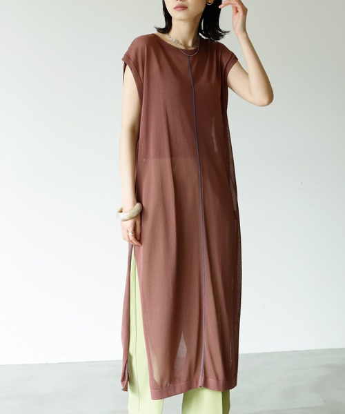 +++Birthdayroom NEW ARRIVAL TREND ITEM!シアーラインニット +++ 【ワンピースとして大人な雰囲気を楽しめる。】 センターとサイドに入ったラインデザインが魅力のアイテム。 上品な透け感と丈感が大人っぽい印象を持たせてくれます。 クルーネックが首元をスッキリした印象に見せてくれます。 柄パンツやシアーインナーを重ねると旬なスタイルに。 ●透け感:あり。レイヤードスタイルがおすすめ。 ●裏地:なし。すっきりとした印象です。 ●伸縮性:あり。着心地快適です。 ●光沢感:なし。マットな質感です。 ●生地の厚さ:春夏向けの素材感。 ≪POINT≫ ◎スラッと縦長シルエットでスタイルアップ◎ 身体のラインを拾いすぎない絶妙なワイド感が細見え効果に。 ウエストマークすればメリハリが出てよりスタイルアップに。 ◎コーディネートの幅が広がる◎ 普段のコーデにざっくり合わせても映えますし、 ロングシャツにベストとしてレイヤードすれば一気に洒落度が上がります。 夏はロングキャミを中に仕込んでワンピ風に着るのもアリです。 【ATTENTION】 ※撮影場所やお使いのモニター環境により若干お色味が異なる場合がございます。ご了承下さい。 ※製品によっては染料の特性上、湿った状態や汗をかいた状態での長時間の放置、または摩擦により、他のものへ色移りする恐れがありますので、着用時にはご注意下さい。 ※風通しがよく、湿気の少ない日の当たらない場所で保管して下さい。 ※また製品加工上、お手元に届く際に匂いが生じる場合がありますが、 ご使用を続けていく事により匂いは軽減されます。 【Information】 ▽商品のお気に入り登録 カートの右のハートをクリック! 完売カラーの再入荷通知を受け取ることができます。 ▽ブランドのお気に入り登録 ブランド名をクリック! 新商品や再入荷の通知を受け取ることができます。 【Birthday room/バースディルーム】 トレンドの一歩先へ。 カジュアルでラフな大人の女性を演出するアイテムを提供。 ※ご注文いただいた予約商品のお届け時期の確認は、注文履歴ページより行えます。