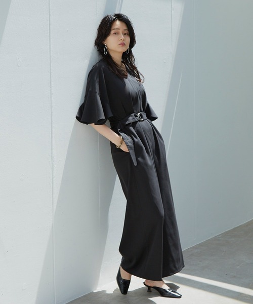 【フレアシルエットジャンプスーツ】 《素材特性》 ドレープ感のある綺麗な質感で、高見え効果◎ しっかりとした生地感で、 ホワイトはナチュラルベージュな色合いとなっており、透けずに一枚で着用が可能です。 《シルエット》 秋に販売していたジャンプスーツがバージョンアップし、2021SummerCollectionとして登場。 スタイルアップ効果をはかった高めに設定されたウエストベルトと パンツ部分のワイドフレアシルエットは残しつつ、女性らしさのでるフレアスリーブをあしらったデザインに。 二の腕周りはカバーしつつ、フレア袖のボリュームを持たせることで よりウエストが細く見えるようなメリハリのあるバランスが完成します。 《ディテール》 露出しすぎず、さりげないバックオープンで、涼しげな印象を与え こなれ感とお洒落さをプラス。 袖のフレアは躍動感あるボリューム仕様ではあるが、 アームが広めで肌にあたる部分がさほどないため 暑苦しさもなく涼しげに着用が可能。 オケージョンにも使えるようなデザインに仕上がっています。 <ブランドコンセプト> トレンドやライフスタイルに都会的エッセンスを加え、 ディティールにこだわり抜いたモードカジュアルスタイルを提案。 ※他のキャンペーンにより、期間中に価格が変動する場合があります。※セールは予告なく終了させていただく場合もあります。