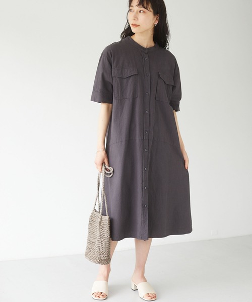 リネンブレンドのさらっとした風合いが魅力的なワンピース。 両胸のフラップポケットもカジュアルなアクセントをプラス。ゆるやかに広がるフレアシルエットもポイントです。 シンプルで着回しもしやすく、デイリーユースにも重宝しそうなアイテム。 ● Green Parks ● (グリーン パークス) 20以上の人気ブランドを取り扱うアパレルセレクトショップ。 ベーシックながらもさりげなくトレンドを取り入れたオリジナルブランドchocol raffine robeも展開。 ▼ 商品のお気に入り登録がおすすめです ▼ 商品ページ内のハートマークをクリック。完売時の再入荷や、最後の1点の通知、コーディネート画像がアップされたとき、お得なお値下げの際の通知を受ける事ができます。 【お知らせ】ページでも通知が確認できます。