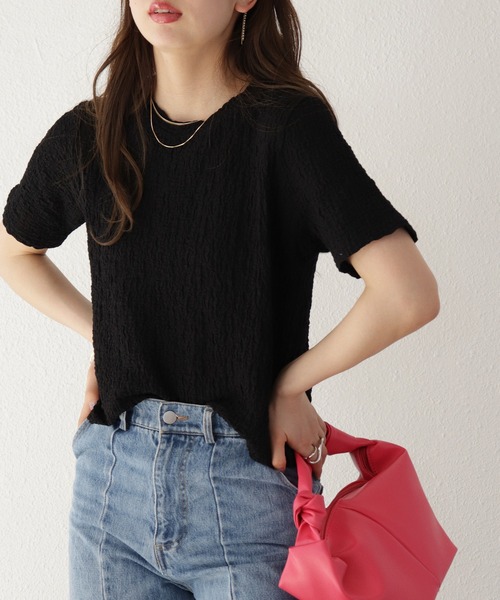 【Shelly island/シェリー アイランド】クシュッとした立体感とコンパクトなシルエットが魅力のTシャツ《detail》・首回りは詰まりすぎていないクルーネック。・程よく身体にフィットするデザイン。・1枚でもレイヤードでもサマになる優秀アイテム《styling》・シャツジャケットやカバーオールのインナーとしても雰囲気のある着こなしに。・カジュアルなパンツはもちろん、マーメイドスカートなど女性らしいボトムスとのスタイリングもおすすめです◎《fabric》 くしゅっとした生地感・透け感:無し(ホワイトのみやや透け感有り)・裏地:無し・伸縮性:やや有り・生地の厚さ:普通※生産時期やカラーによって、生産国と混率が変わります。 生産国・混率の指定は出来かねます。ご了承の上、お買い求め下さいませ。【商品のお気に入り登録】完売カラーの再入荷通知やラスト1点の通知プライスダウンの通知も受け取ることができます。ぜひご登録ください◎【ブランドのお気に入り登録】新商品や再入荷など、ブランドの情報をいち早くお知らせします!ぜひご登録ください◎※この商品は、摩擦や、汗・雨などによる水ぬれにより色落ちが生じる場合がございます。衣服や周囲のものに色移りする恐れがありますので、白色や淡色のものと組み合わせる際は、十分にご注意ください。※撮影環境により多少実際のカラーと異なる場合がございます。※生産時期により若干の色ブレやサイズの変動が生じる場合がございます。※表示のサイズ感と実物は異なる場合もございます。上記ご了承の上、お買い求め下さいませ。