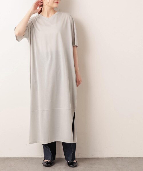 ピュアルセシン 2021 Spring collection 【with a Breeze】新しい価値観の生活の中でこそ、ピュアルらしさのモノづくりの持続とその中にも、エフォートレスな気分、「with a Breeze」風をまとい、丁寧な暮らしに寄り添える、洗練されたスタイリングの提案◇2WAYで着用できるロゴ刺繍ワンピース◇首元にブランドのロゴ刺繍が施されたワンピース。さりげないワンポイント刺繍なので、主張しすぎずデイリーに着用していただける1枚です。サイドにスリットが入っているので、パンツ合わせも綺麗に纏まります。生地はシルケット加工をすることによって、ツルっとした肌触りで夏でもストレスフリーな着心地。前後着用が可能なワンピースですが、片面はロゴが入っていないので、よりシンプルなデザインです。ネックラインも前後で異なり、1枚で2度楽しめるワンピースになっております。・夏でも涼しく着用が出来るシルケット加工・ワンピースとして1枚でも着用可能・首元のワンポイントロゴ刺繍が可愛い・Vネックでお顔周りすっきり===============================透け感:ややあり裏地:なし伸縮性:あり光沢感:なし生地の厚さ:やや薄め【スタッフコメント】年齢:20代前半/身長:157cm/普段着用サイズ:Mサイズサイズ感:落ち感のある形なので、パンツ合わせもおすすめです。やや透け感のある生地なので、淡いカラーはインナーに注意です。素材感:シルケット加工を加え、より滑らかな素材感です。===============================※撮影場所やお使いのモニター環境により若干お色味が異なる場合がございます。特にロケの撮影では明るく見える傾向にございます。※予約商品はサンプルで撮影をしております。若干の仕様が変更になる場合がございますので予めご了承の上ご注文くださいますようお願いいたします 。