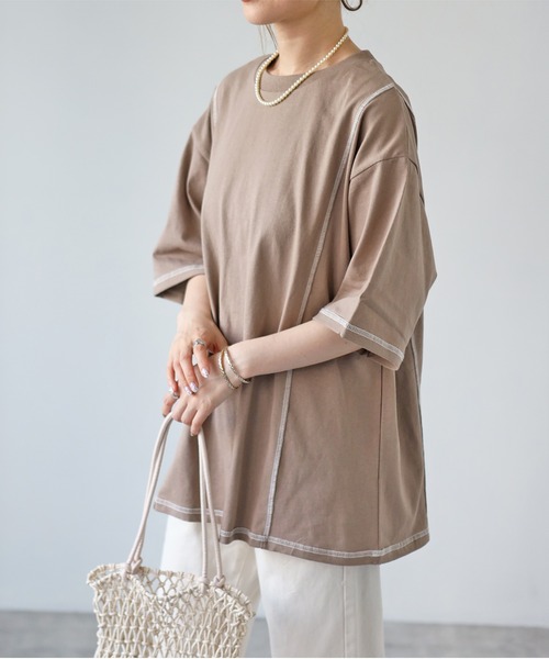 ★リンキングデザインがポイントTシャツ★ 《スタイリング》 1枚で着用するんはもちろん TOPSインスタイルやスカート、デニムなどでカジュアルコーデが楽しめます。 《ポイント》 しっかりとした生地の綿100%なので着心地も快適です。 長めの丈感とゆったりしたサイズ感なのでさりげなく体型カバーもしてくれます。 カラーも5色展開で豊富です。