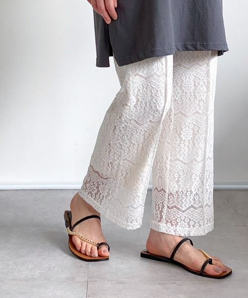 レース素材のパンツが入荷です■デザイン透け感がかわいいレースパンツが登場しました。これからの季節長く使用できるアイテム。トレンドのデザインで、1枚でコーディネートの主役に!セミフレアシルエットのパンツでトレンド感も抜群腰回りも程よいゆとりを持たせ裾にかけて広がるシルエットなので脚長効果もあり裏地付きで、下着のラインを気にせず着用可能です。ウエストは後ろでゴムストレスフリーな履き心地もうれしいポイントです。お手持ちのボトムに変化を付けたい方にお勧めです。■コーディネート長めのシャツやワンピースに重ねたレイヤードスタイルがお勧めです。夏はT シャツに合わせると、程よくカジュアルダウンして着て頂けます。≪INFORMATION ≫▾商品のお気に入り登録▾お気に入り登録した商品は、セールの通知、ラスト1点の通知、完売カラーの再入荷通知、クーポン発行やタイムセールの通知も受け取ることができます。▾ショップ・ブランドのお気に入り登録▾新商品の発売や再入荷、タイムセールの通知など、ottilie取扱いブランドのお得な情報をいち早く受け取ることができます。