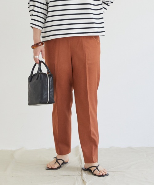 オフィスにもお出かけ着にも使えるパイピングポケットがポイントのテーパードパンツ シンプルながら縫い付けのセンターラインとポケットのパイピングがさり気ないポイントに。 レッグラインがすっきり見える細身のテーパードシルエットですが、ウエスト一部ゴムでストレスフリーな着心地で着心地も◎ Tシャツ、ブラウスなどシンプルなアイテムとのスタイリングと合わせるのがおすすめ。 ■商品のお気に入り登録■ 完売していても再入荷時に再入荷通知を受け取ることができますので、是非ご登録ください☆ ※取り扱いについては、商品についている品質表示でご確認ください。※照明の関係により、実際より明るく見える場合がございます。またパソコンなどの環境により、製品と画像のカラーが若干異なる場合がございますので、予めご了承くださいませ。