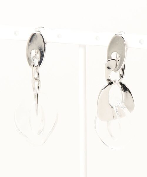 涼しげなクリアパーツを組み合わせたチェーンモチーフのイヤリング。 揺れる動きのあるデザインが顔周りにメリハリ感をプラス。程よくボリューム感がありながらも、軽量でに見つけやすいのも嬉しいポイントです。 カジュアルにも綺麗めにもバランスよくスタイリング出来るアイテムは、ちょっとしたギフトにもおすすめです。