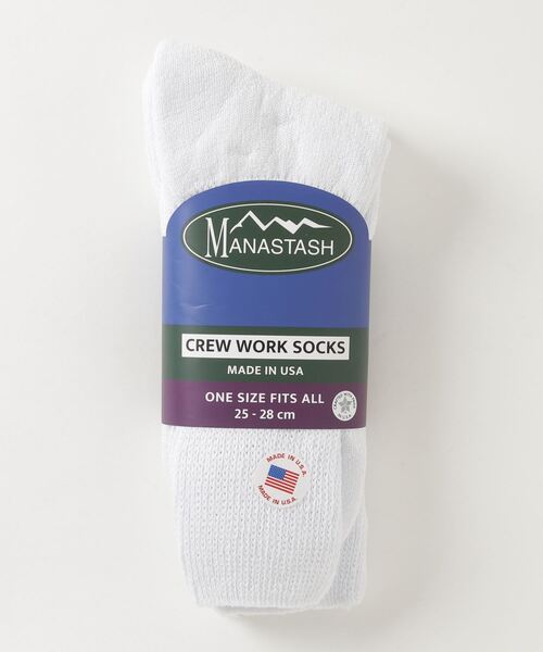 MANASTASH/マナスタッシュ 2P CREW WORK SOCKS1900年初頭創業の老舗ソックスメーカーによる2PACK SOCKSです。元々、糖尿病患者などへ向けたソックスでリブが入らない緩さが特徴です。素材はコットンをベースにナイロンとエラスティック混紡のボディは履き心地の良さとたるませた時の雰囲気も抜群。「男のルーズソックス」MADE IN USAなのも嬉しいポイント。【MANASTASH/マナスタッシュ】MANASTASHは1993年設立の米国シアトルのアウトドアブランド。その理念は、環境に優しい素材、例えばヘンプやリサイクルフリースを使用して最高のウエアとギアを作ることです。偉大なるカスケード山脈から駆け落ちるマナスタッシュ山高原ではスキー、トレッキング、マウンテンバイク、ラフティング、カヤックなどワイルドで多様なアウトドアスポーツが楽しめます。フリーダムをベースとしたライフスタイルを代表する、実用的でスタイリッシュ、そしてハイクォリティなウエア。山、川、そして道…MANASTASHは、自然環境の中で情熱を追いかけているすべての人々と繋がっています。