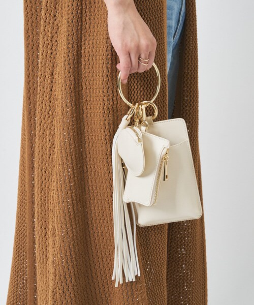 ワンマイルアイテムに便利な組み合わせ自由なチャームバッグ●デザインスマホ用ミニバッグと、丸ポーチ、ミニ財布と、フリンジチャームが、一つになったマルチなセットバッグ。それぞれ簡単に取り外しができるので、使い勝手や、用途に合わせて組み合わせが自由自在です。また、それぞれお手持ちのバッグにお付けいただくことも可能です。スマホ用ミニバッグ:スマホとカードやICカードをいれられるポケットがついたミニバッグ。丸ポーチ:小銭や鍵などを入れられるかわいいフォルムのポーチ。ミニ財布:背面にカードを入れて、中には小銭や鍵なども入るミニ財布。ショルダーストラップの長さは調節可能となっています。また、ショルダーをとって、上品なゴールドのリングで手持ちも可能です。ワンピースや、トレンドのセットアップスタイルなど、シンプルコーディネートのアクセントアイテムとしておすすめです。●サイズスマホ用ミニバッグ:持ち手:100-106cm × 高さ:18cm × 幅:11.5cm × マチ2cm 丸ポーチ:縦:8cm×横:9cmミニ財布:縦:11cm×6.5cmフリンジチャーム長さ:28.5cm【気になる商品は「お気に入り」登録を】ハートマークをクリックし、お好きなカラーを選んでお気に入りに登録すると入荷情報や残り1点の通知、完売カラーの再入荷、セール情報などを受け取ることができます。※撮影場所やお使いのモニター環境により若干お色味が異なる場合がございます。特にロケの撮影では明るく見える傾向にございます。詳細撮影画像で色味をお確かめくださいます様お願いいたします。※また、雨の日のご使用はご注意下さい。PAPILLONNER