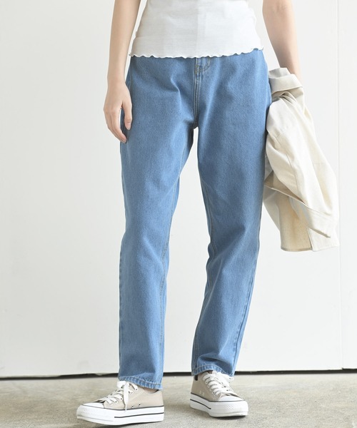 ソフトワイドなテーパードパンツほどよいゆとりが使いやすいデイリーシーンにぴったりなカジュアルパンツ。裾に向かって細くなるテーパードシルエットなので女性らしい装いを演出してくれます。脚のラインを拾わず体系カバーもしてくれる安心のボトムス。ハイウエストが脚長効果を発揮してスタイルアップも狙えます。コットンツイルとデニムの使いやすいカラバリ。大人のカジュアルスタイルにぴったりな1枚です♪裏地なし伸縮性なし薄手前開きファスナー・ボタン留めサイド・ヒップポケットありウエスト後ろゴム仕様ベルトループあり織キズやだま等は生地の特質です色落の可能性がございます(しばらくは単独でお洗濯してください・白系のお洋服や小物類等一緒にご着用されますと色移りする場合がございます)洗濯:手洗い可