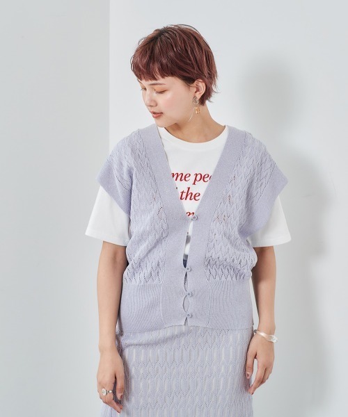 今季流行りのレイヤードスタイルが作りやすいセットアップにもなるビスチェ レースの涼しげな素材が春・夏を演出してくれますよ♪ 女性らしいデザインですが、Tシャツなどと重ね着すると、 大人カジュアルにきまってこれまたかわいいです! セットアップとしてもお使いいただけます。 マーブルレーススカート:57551459