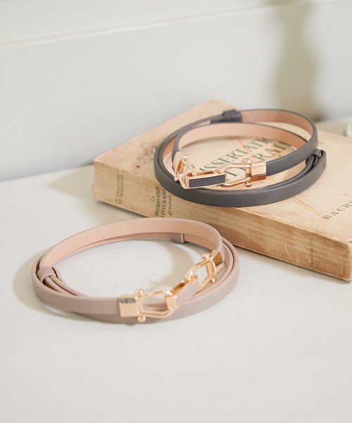 バックルデザインが印象的なスライド式ベルト。 センター部分のバーモチーフが目を惹く仕上がり。 コーディネートのアクセントになるデザイン性の高いアイテムです。 ベルト部分はスライド式なのでサイズ調整もしやすく、ウエストにジャストフィットしてくれます。 ニュアンスカラーなので幅広いカラーやアイテムにもスタイリングしやすくコーディネートの幅が広がります。 シルエットも華奢なので、オフィシャルからデイリーまで活躍してくれるアイテムです。 【おすすめ着用シーン】 結婚式、披露宴、二次会、パーティー、成人式、謝恩会、卒業パーティー、セレモニー、女子会、同窓会、食事会、記念日などの特別な日に。 ※照明の関係により、実際よりも色味が違って見える場合があります。 またパソコン・スマートフォンなどの環境により、若干製品と画像のカラーが異なる場合もございます。 予めご了承ください。