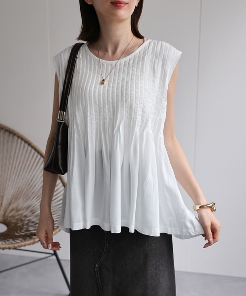 ● sakishimatokyo collection ● 【リネンブレンド】ピンタックノースリーブブラウス/綿麻 フロントに施した繊細なピンタックが印象的な一着 裾に向かってフレアシルエットになるので フェミニンな雰囲気を演出してくれます。 ■POINT■ 胸下からピンタックが解けてふんわりシルエットが生まれます 柔らかな麻混素材でしっとり涼しい生地で暑い夏にも快適な着心地です。 ノースリーブですが、肩が隠れる絶妙なシルエットで 肩周りをスッキリと見せてくれます。 ■FABRIC■ ------------------------- 透け感:ややあり 伸縮性:なし 裏地:なし 推奨シーズン:6~9月(秋や春のジャケットのインナーとしてもおすすめです) ------------------------ ※ご注文いただいた予約商品のお届け時期の確認は、注文履歴ページより行えます。 ※商品画像は、撮影時の光や角度により、実物の色味と異なって見える場合がございます。 ※商品画像は、ご覧のモニター環境や撮影環境により実際の商品と色味が異なって見える場合がございます。 ※生産時期により色・素材・サイズ感・仕様、原産国などが多少異なる場合がございます。予めご了承ください。 ※他のキャンペーンにより、期間中に価格が変動する場合があります。 ※セールは予告なく終了させていただく場合もあります。 ※こちらの商品はリニューアル商品です。過去に販売していた商品を新たにアレンジしております