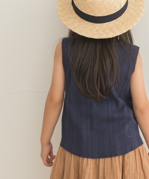 盛夏にぴったりの涼し気なノースリーブカットソー。 表情のあるランダムリブやお裾のラウンドカットなど細部にまでこだわった一枚。程よいフィット感でインナーとしても使い勝手の良いアイテムです。大人顔負けの落ち着いたトーンの色展開にも注目です。 [サイズ] 105=100~110cm 120=115~125cm 135=130~140cm 150=145~155cm ※サイズは目安です。採寸表をご参照ください。 ※商品画像は、光の当たり具合やパソコンなどの閲覧環境により、実際の色味と異なって見える場合がございます。予めご了承ください。 ※商品の色味の目安は、商品単体の画像をご参照ください。 ▼お気に入り登録のおすすめ▼ お気に入り登録商品は、マイページにて現在の価格情報や在庫状況の確認が可能です。 お買い物リストの管理に是非ご利用下さい。 ----------------------------- 透け感:なし 伸縮性:あり 裏地:なし 光沢:なし ポケット:なし -----------------------------