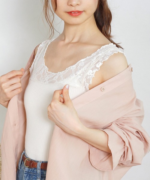 人気のレースインナーに新作が登場! Crisp定番のレースタンクトップ。 程よいフィット感と繊細なレースで女性らしさを演出してくれます。 レイヤードコーデのインナーとして活躍の1枚。 襟ぐりが大きく開いたトップスや、羽織りアイテムなどから覗かせる着こなしがおすすめです。 シンプルで使いやすいので色違いで揃えておくのも◎ デコルテがきれいに見えるネックライン。 シアーなレースがコーディネートを華やかにしてくれます。 細めのリブ地と透け感のあるレースで大人っぽく着られます。 伸縮性があり快適な着心地です。 - - - - - - - - - - - - - - - - - - - - - - - - - - - - - - - - - 透け感:なし(レース部分あり) 裏地:なし 伸縮性:あり 光沢感:なし - - - - - - - - - - - - - - - - - - - - - - - - - - - - - - - - - ※ 撮影時の照明などの環境と、モニターに表示される色味がメーカーにより変わってしまう等の理由により、実際にお届けする商品と、ご覧になられているアイテムの色が若干異なる場合がございます。ご了承下さいませ。