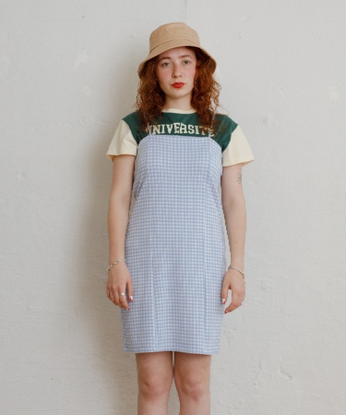 2021年トレンドNO1ギンガムチェックワンピース!【Material】コットンジャージ素材の伸縮性のあるプリント生地を使用。裏地あり。【Design】可愛らしいギンガムチェック柄のチューブトップ型キャミワンピース。伸縮性のある素材で着心地抜群!背面のさりげないポイントに「BG」のワッペンが付いていて可愛いデザイン。ベーシックで使いやすいネイビー、夏色なイエロー、スカイブルーの3色展開。インナーにはTシャツタンクトップなどを合わせて、可愛らしいコーディネートがオススメ!同素材のフレアパンツ と組み合わせてセットアップでも着用するとよりこなれ感UP【関連品番】ZPS61030----------透け:なし裏地:あり伸縮性:あり光沢感:なし生地の厚さ:普通ポケット:なし----------【スタッフレビュー】とても柔らかく伸縮性がある素材ですが、身体のシルエットを拾い過ぎないので着やすいです。1枚でも可愛いですが、露出に抵抗のある方はTシャツと合わせればカジュアルダウンで、ブラウスと合わせればよりガーリーに着れるのでインナーとの合わせを楽しめます。同柄のパンツとセットで着ると人と被らないコーディネートになるのでおすすめです。【お店ではこんなお客様が購入されています】春夏にむけてワンピースをお探しの方に。【着用サイズ】model H165cm 着用サイズF