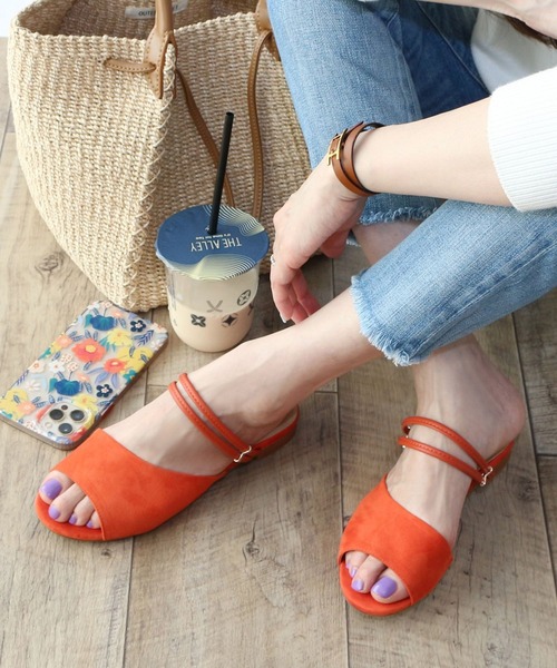 【Fin 2021Summer collection】 ■ペタンコなのにすらっと足元が叶います■ 流れるようなアッパーのデザインに華奢なベルトが大人可愛いFin(フィン)の2WAYフラットサンダルが登場しました。アッパーの流れるような斜めのカットが足元をきれいなラインに演出してくれて、オシャレ感アップ。フラットですが美脚効果も期待できる一足です。 ■2WAYで使える万能アイテム■ 中敷きの下にはふかふかの低反発クッションをセットしているので、足裏にも優しいのが嬉しい。ミュールのようにも履けますが、2本のベルトの間に足を通して、1本をかかとに引っ掛けて履くことも出来る2WAYタイプなので、ホールド感も抜群です。引き続き人気のデニムやワイドパンツにはもちろんですが、ロングスカートやショートパンツなど、リゾートテイストのアイテムと合わせてゆるめに履きこなすのもおすすめです。 ■低反発スポンジ入り(低反発スポンジを使用することにより歩行時の衝撃をやわらげます。) *低反発スポンジ・・・圧力を分散し、包み込む様なクッション感が特徴です。スタッフによるサイズ感■普段のサイズ:Mサイズ(23.5cm) 足幅E(普通)■着用サイズ:Mサイズ■感想:普段はMサイズを履いていますが、素足で合わせてぴったりのサイズ感でした。甲をしっかり覆ってくれるデザインでフィット感があり、素材が柔らかい為足が痛くなってしまうことはありません。かかとを固定して履く際にベルトの金具で調節が出来る為、歩いていても脱げてしまう心配はないです。ヒールは1.2cmと低めの為、長時間履いていても疲れてしまうことはなさそうです。※上記は弊社スタッフの個人的な感想になります。お客様により感想が異なりますため、あくまで参考としてご覧下さい。