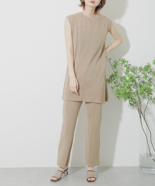 このアイテムは、WEBと一部店舗での取り扱いです。リラックス感×きちんと感、どちらも叶えるニットセットアップ別々でも使えて嬉しいニットトップスとニットパンツ合わせのセットアイテム◯セットアップとして着用頂くほか、トップス、ボトム別でも着回しの利くおすすめのアイテムです。◯トップスはヒップを隠す着丈で体型カバー効果も◎◯ボトムはワイドシルエットながらセンターシムですっきり見え◎◯パンツのウエストはゴム仕様でストレスフリーに着用いただけます。styling持っているとコディネートの幅が広がるセットアップは、アクセサリーなど小物次第でぱっと華やかな印象に!トップスとボトムどちらもシンプルなデザインなので、お手持ちのアイテムとの組み合わせで別々に使えるのも嬉しいポイント。※ピリングが発生した場合、1日着用したら何日か休ませるなど、ローテーションを考えて着用して下さい。ピリングは引っ張って取ろうとせず、小さなハサミなどで丁寧に取り除いて下さい。※商品画像は、光の当たり具合やパソコンなどの閲覧環境により、実際の色味と異なって見える場合がございます。予めご了承ください。※商品の色味の目安は、商品単体の画像をご参照ください。-----------------------------透け感 : ややあり(トップスのみ)伸縮性 : ややあり裏地 : なし光沢 : なしポケット : なし-----------------------------