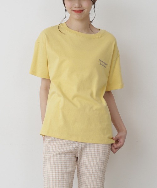 柔らかいタッチの面天竺素材を使用したプリントTシャツ。ジャストなサイズ感ながら、ヒップが隠れる着丈でリラックスした着心地です。フロントの左胸とバックにレトロなクラックロゴ(ひび割れ)をプリントし、古着のような味のある風合いにしました。010ブラックベースにはホワイトプリントでベーシックな印象に、030オフホワイトには赤、060イエローにはパープルプリントでポップな印象に仕上げています。※ロゴの意味【meaningful existence・意味のある存在】【cherish this moment・今を大切に】