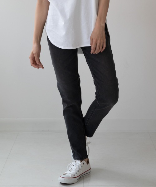 レッグラインの細見えを狙う切り替えやヒップがきれいに見えるポケットサイズにこだわった美脚パンツ。 トップスをインすれば脚長効果な、股上の深さも特徴です。 フィット感満載で、アクティブに動き回る日にも重宝します! キレイめからカジュアルまで幅広いスタイリングに活躍してくれる万能デニムです。